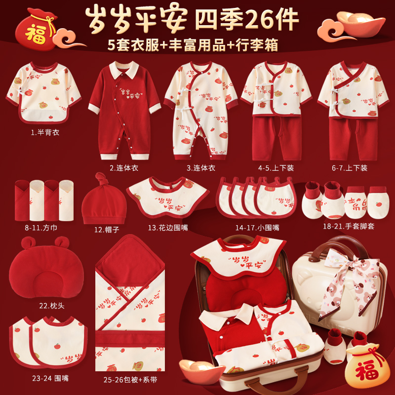 蛇年婴儿礼盒套装产房纯棉无骨衣服初生宝宝春夏新生待产包满月礼