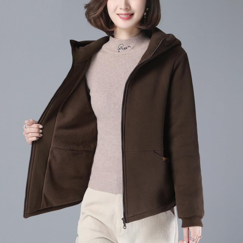 加绒卫衣鑫9921女宽松版连帽加厚新款秋韩潮短款季冬上冬衣外套