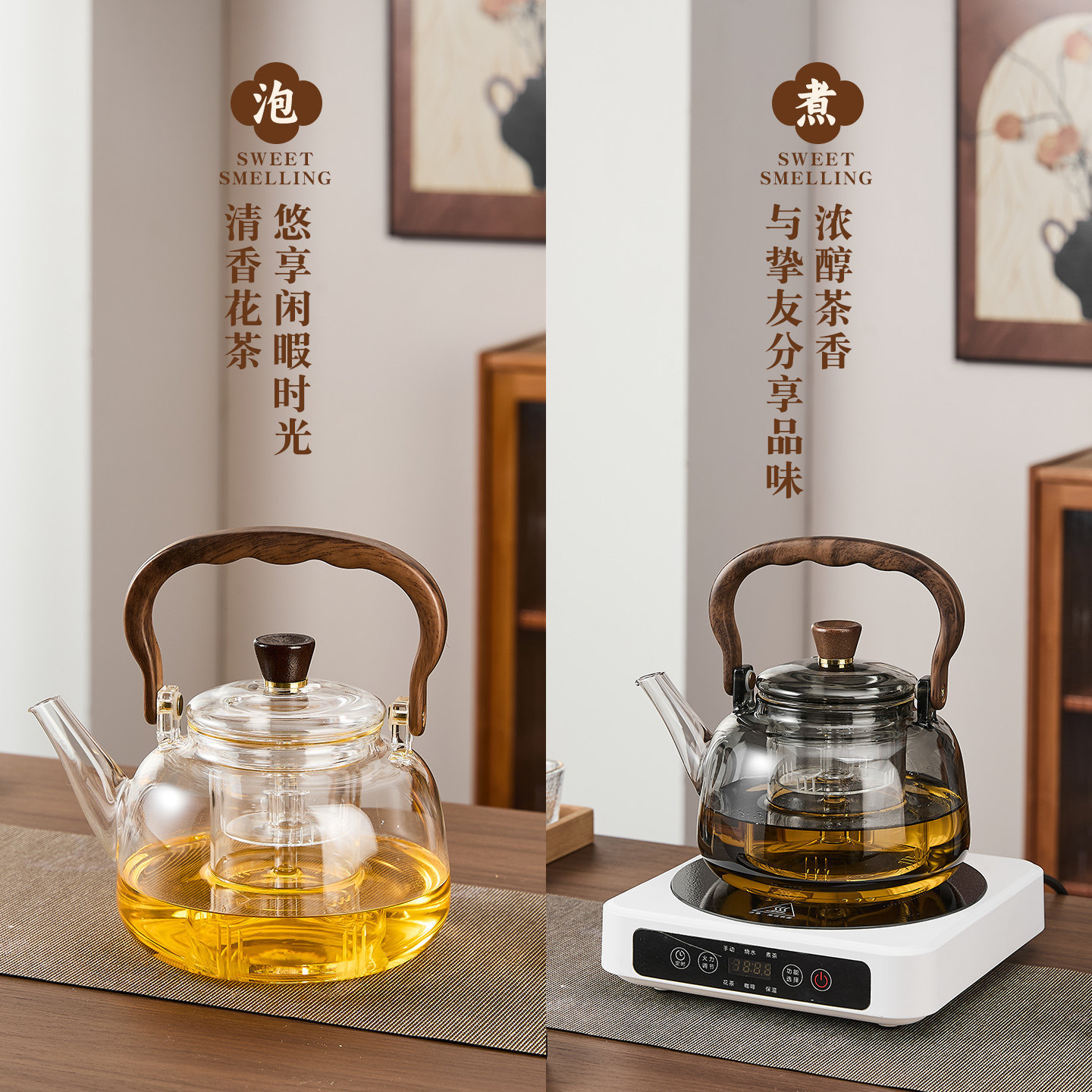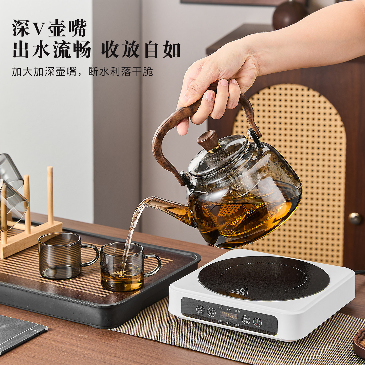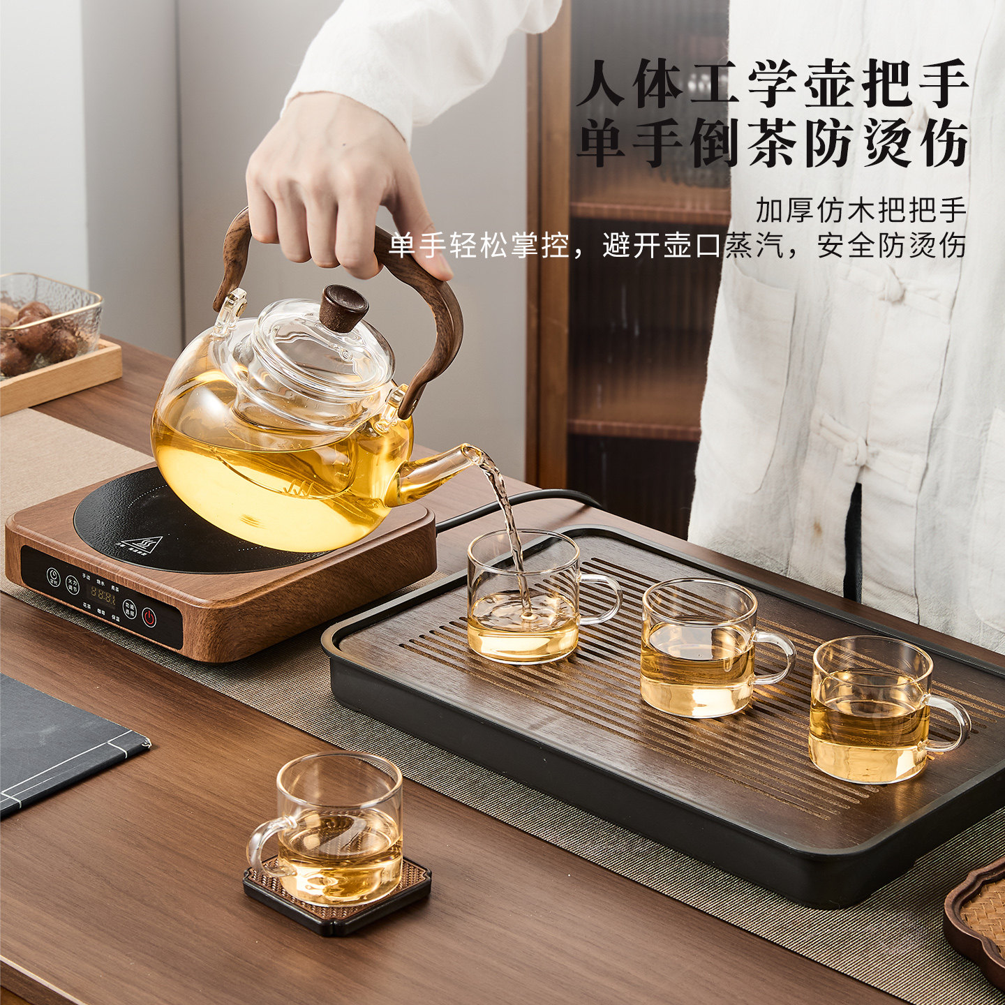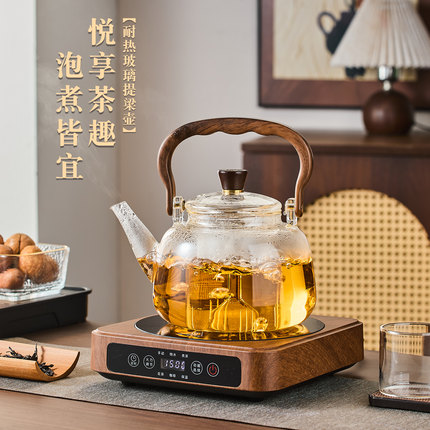 青苹果玻璃蒸煮茶壶2026新款烧水壶提梁围炉煮茶器电陶炉茶具套装