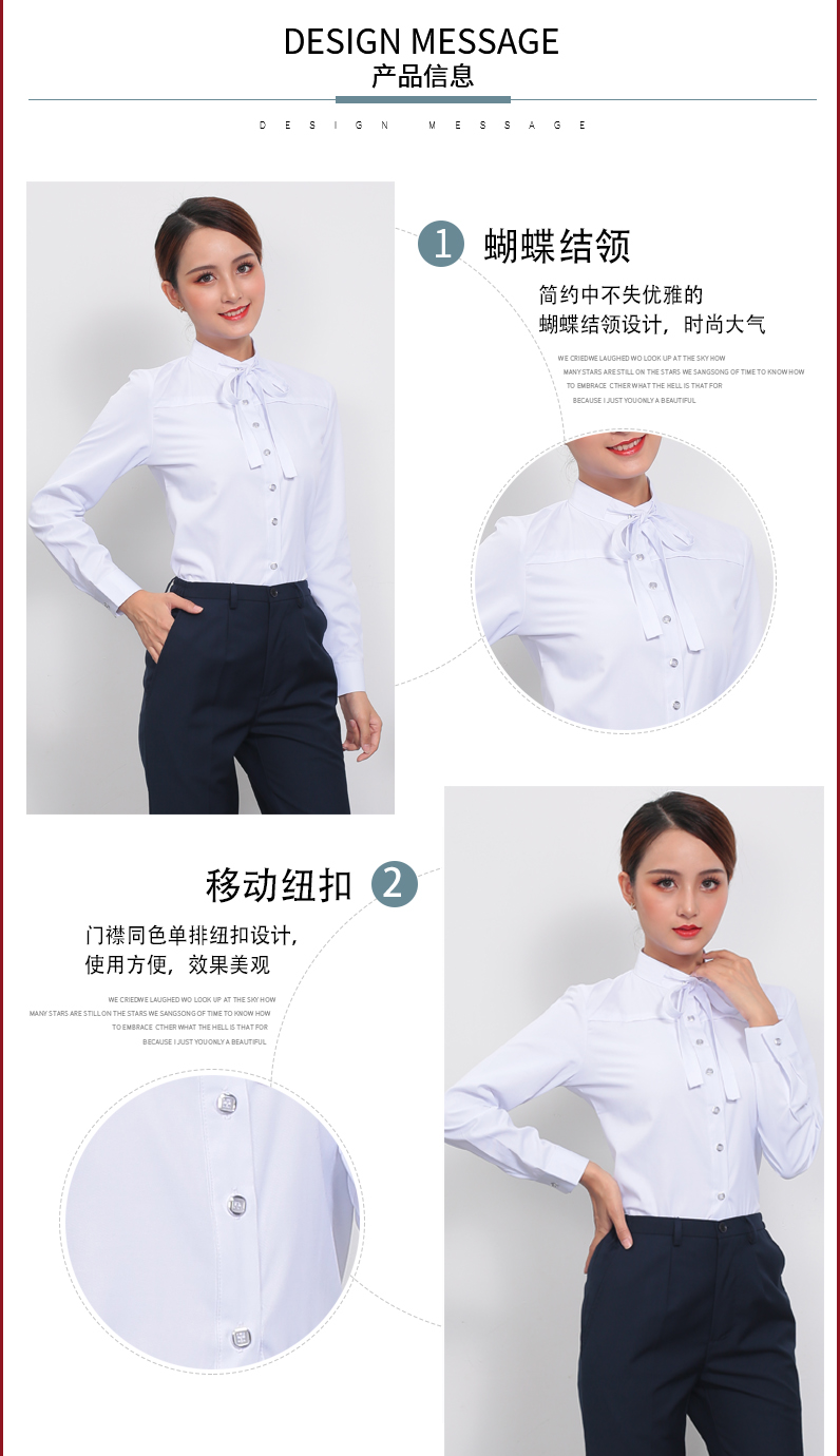 蝴蝶结营业厅制服长袖衬衫