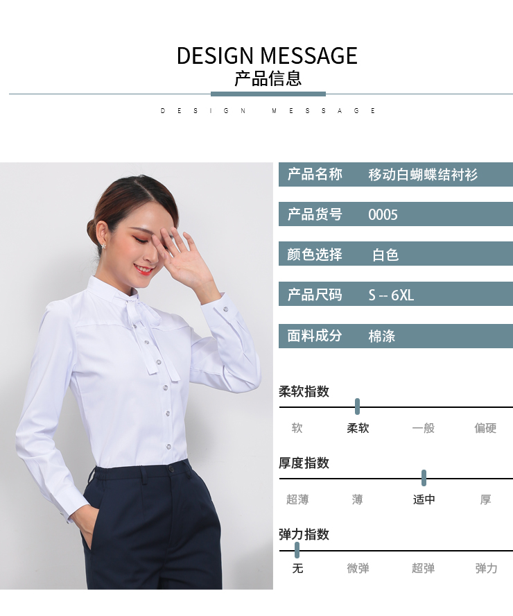 新款中国移动工作服女白蝴蝶结长袖衬衫营业厅公司制服套装衬衣秋