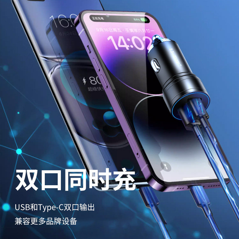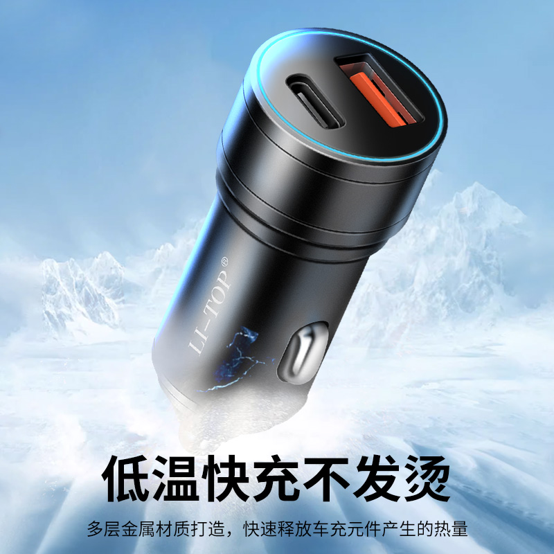 力拓QC20车载充电头铝合金金属双USB口汽车2.1A手机车充头充电器