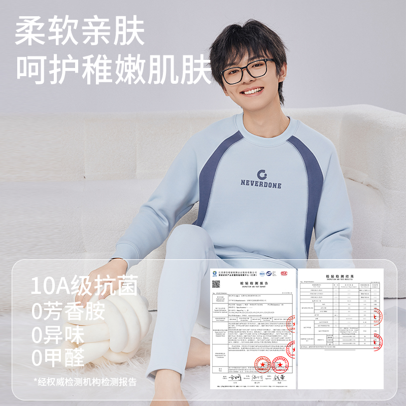 雅鹿初高中学生青少年保暖内衣男大童加绒加厚秋衣秋裤套装棉毛衫