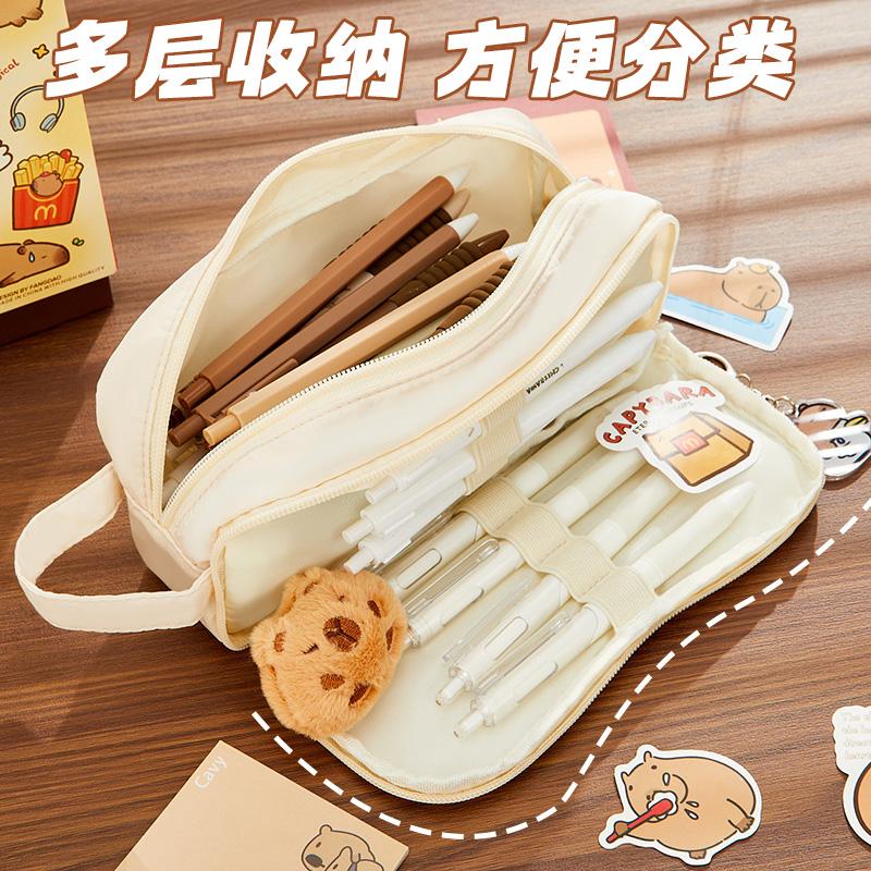 紫色系小清新笔袋高颜值ins风简约初中生女生款带双层笔插2024新款大容量可爱小学生铅笔文具盒韩系慵懒风