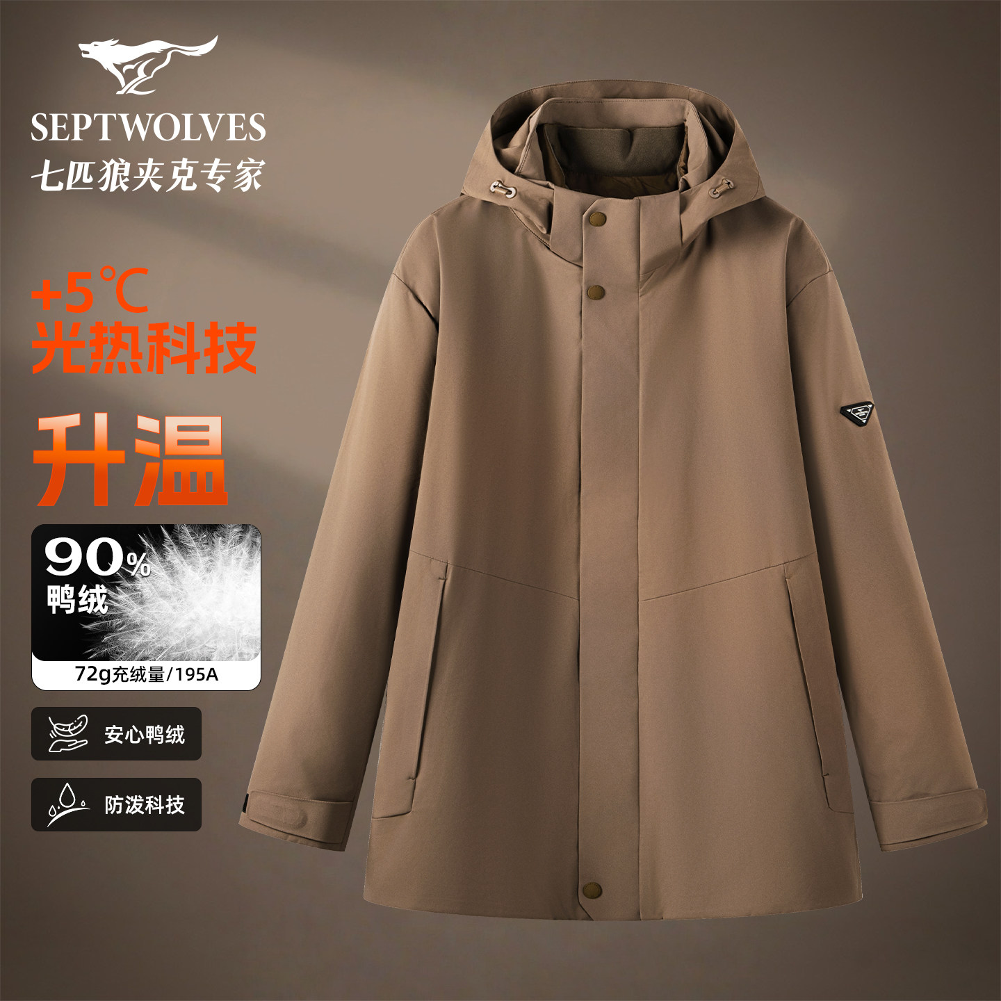 七匹狼连帽羽绒服男2025新款男装三合一防泼水两件套羽绒冲锋外套