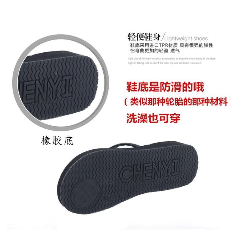 夏季人字拖女防滑坡跟纯色凉拖鞋厚底防水台沙滩松糕鞋平跟凉拖鞋