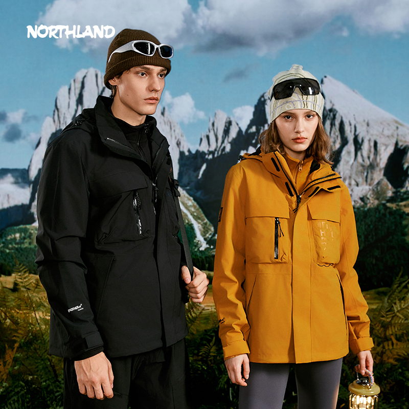 诺诗兰男女抓绒内胆三合一冲锋衣防风防雨户外徒步登山服连帽外套