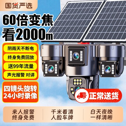 【四镜头旋转】太阳能监控摄像头