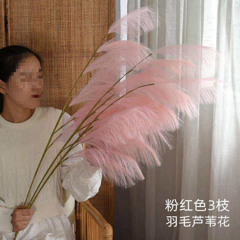 仿真芦苇花假花干花粉色大蒲苇羽毛花束客厅室内摆件橱窗落地装饰