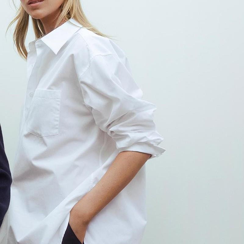 【现货】Rouje Life白色纯棉经典衬衣宽松落肩廓形百搭长袖衬衫女