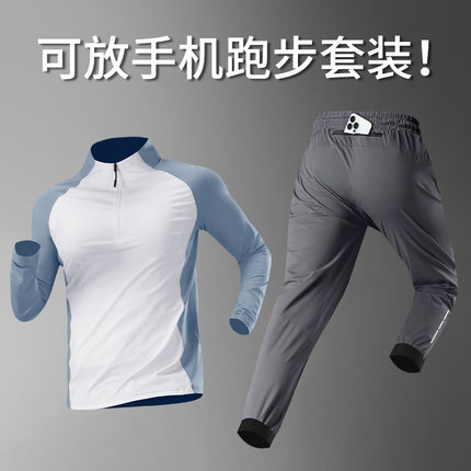 运动套装男薄款跑步可放手机长裤秋季专业晨跑服速干健身训练装备