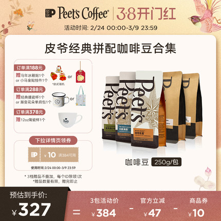 Peets皮爷经典多款新鲜中烘阿拉比卡咖啡豆黑咖拿铁意式拼配250g