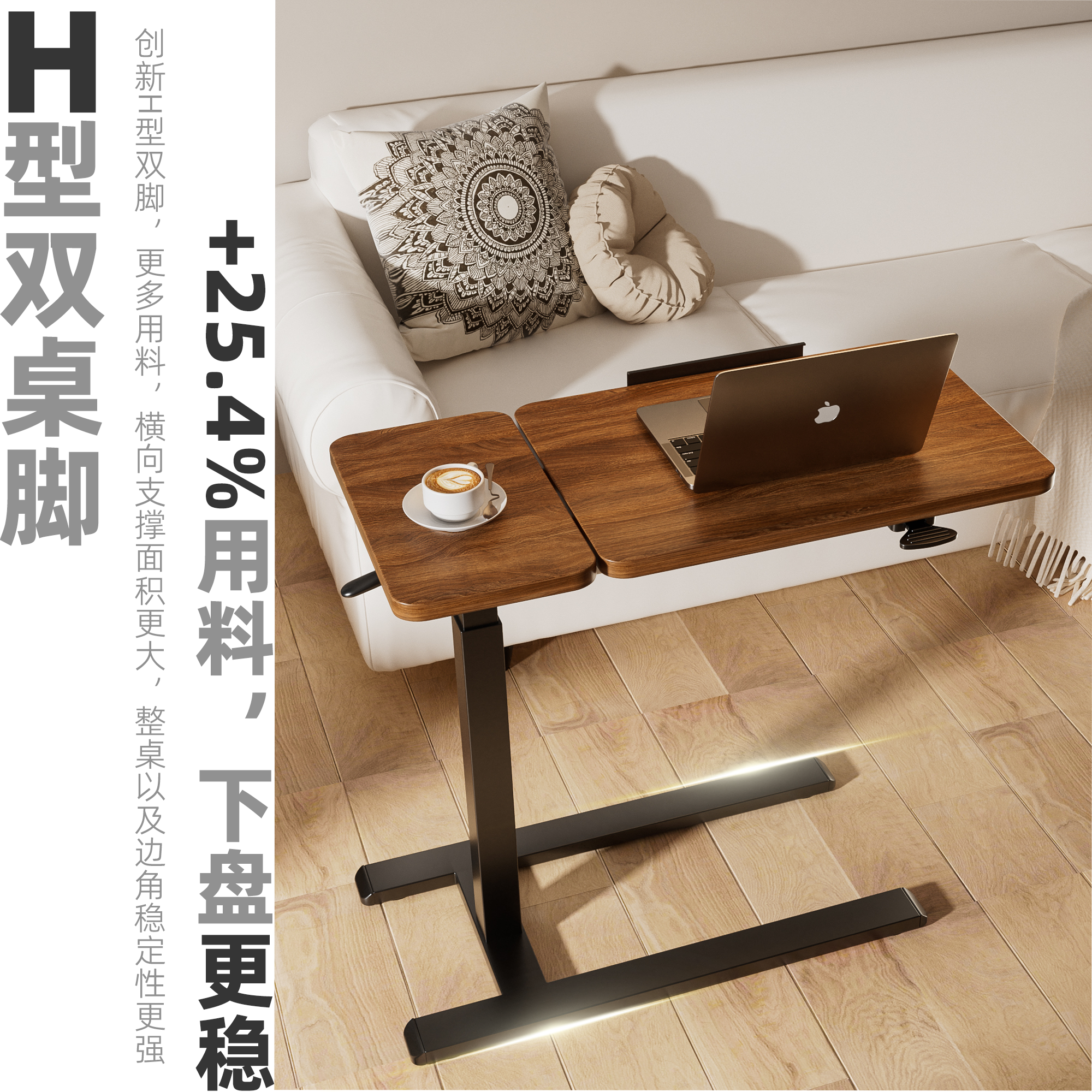 气动电脑桌可移动升降桌床边桌家用办公学习桌子卧室小型站立书桌