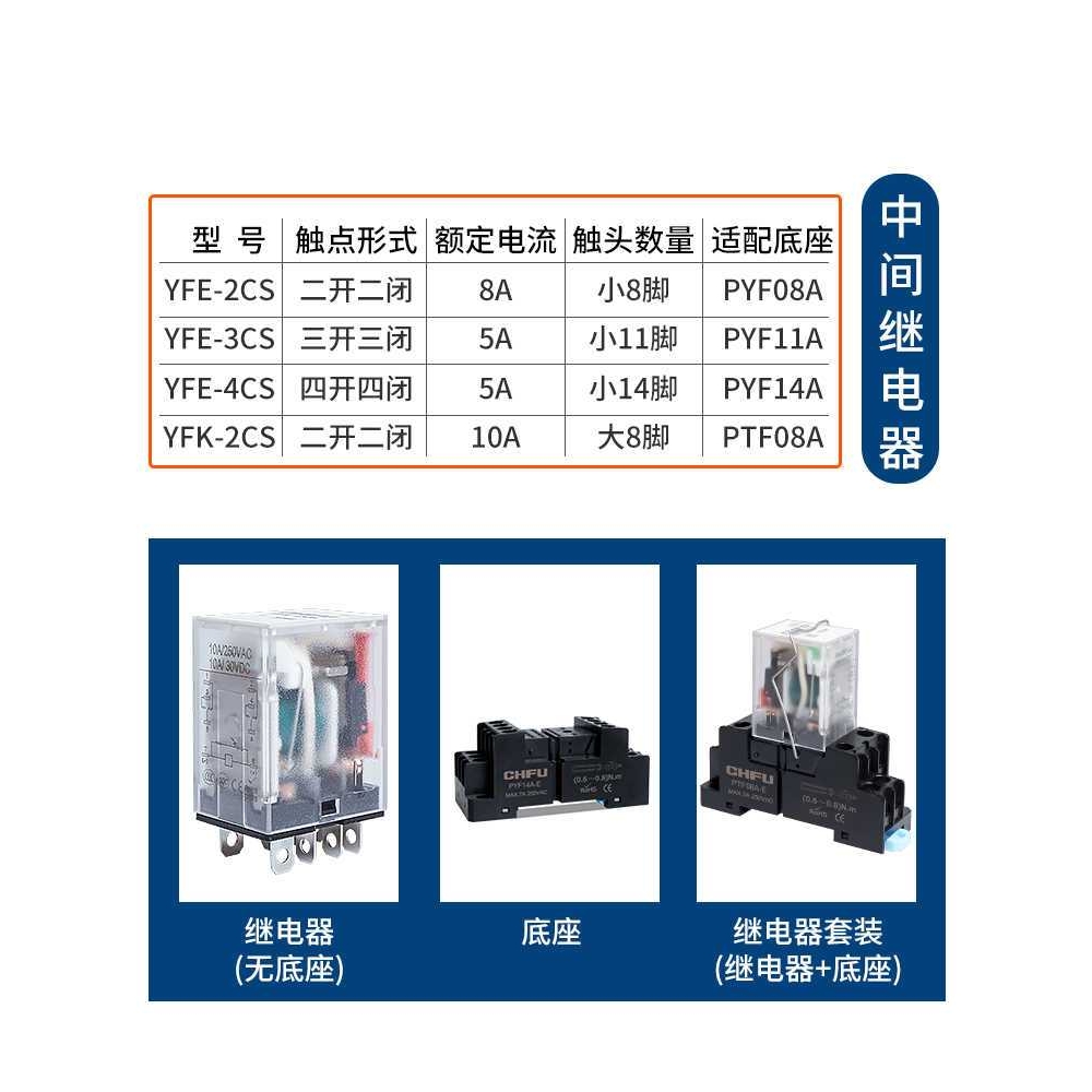 5只中间继电器12v24v220v交流三相大电流hh52p小型继电器MY2NJ8脚