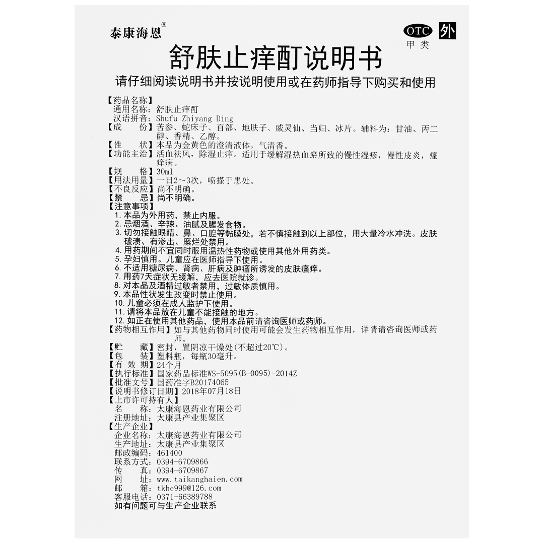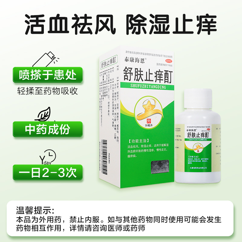 泰康海恩舒肤止痒酊30ml活血祛风除湿止痒湿热血瘀慢性湿疹皮炎