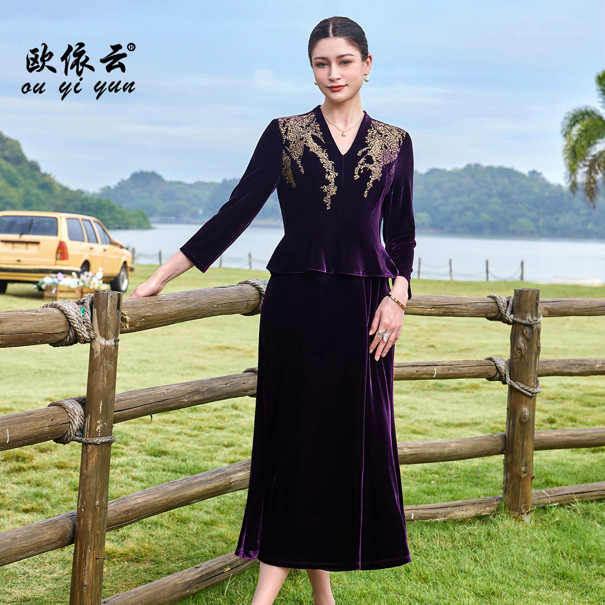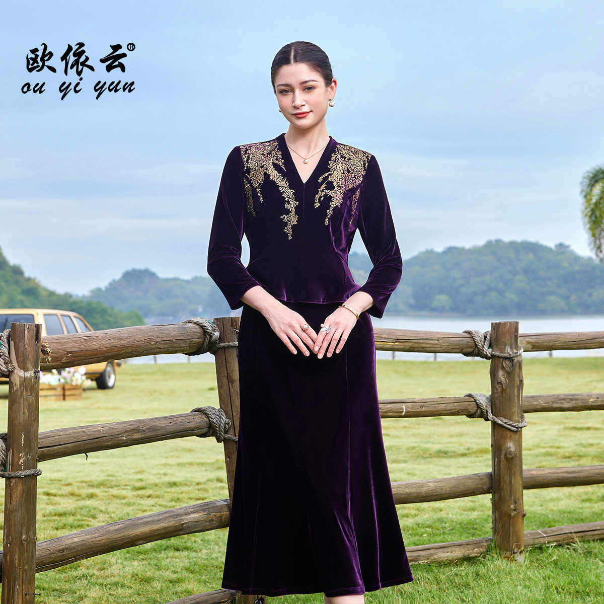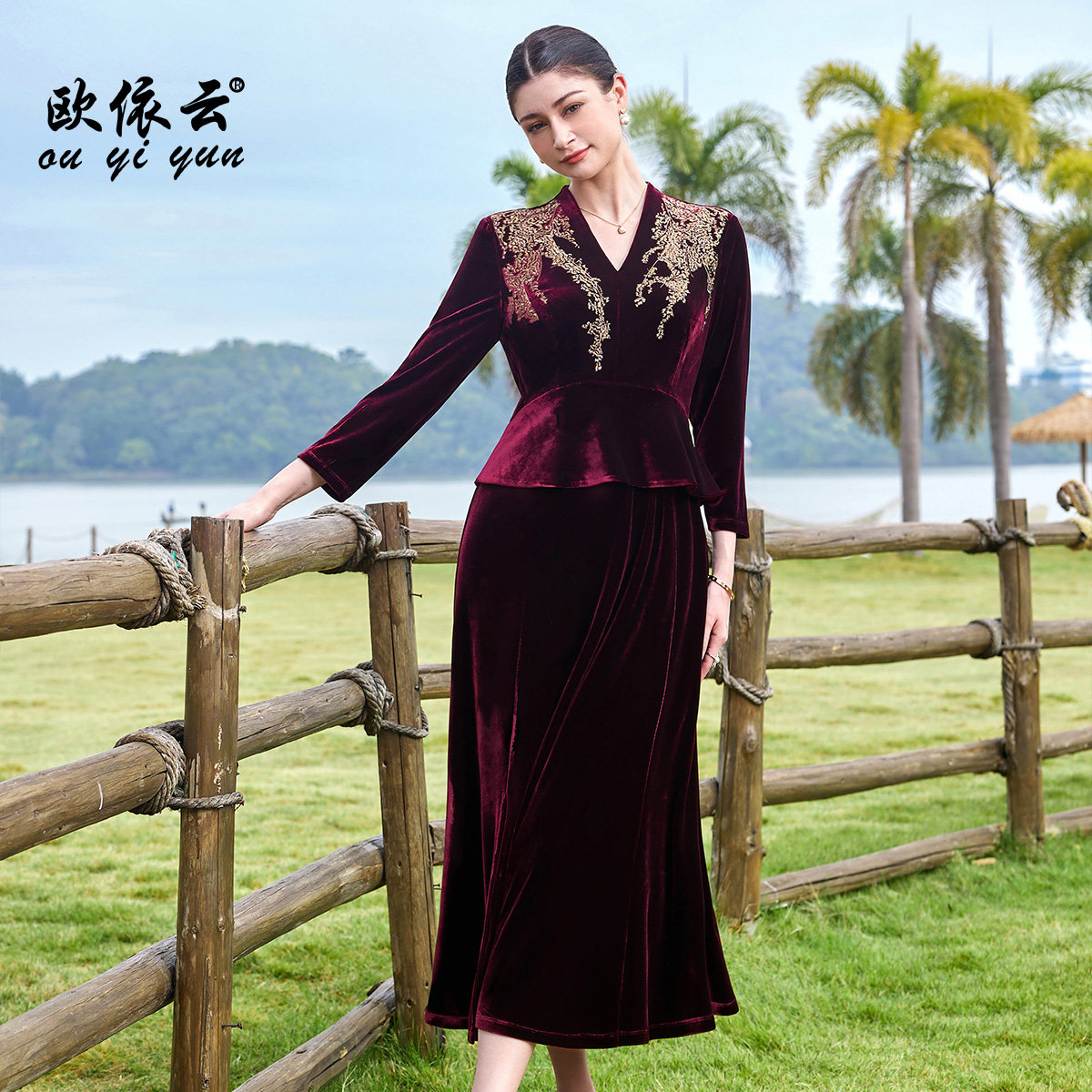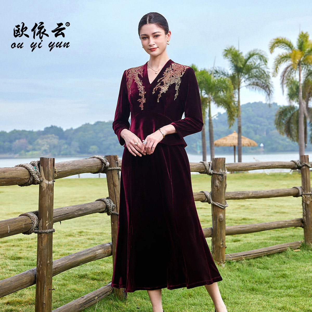 欧依云中年妈妈改良旗袍裙华丽气质优雅假两件长裙子春装2026新款