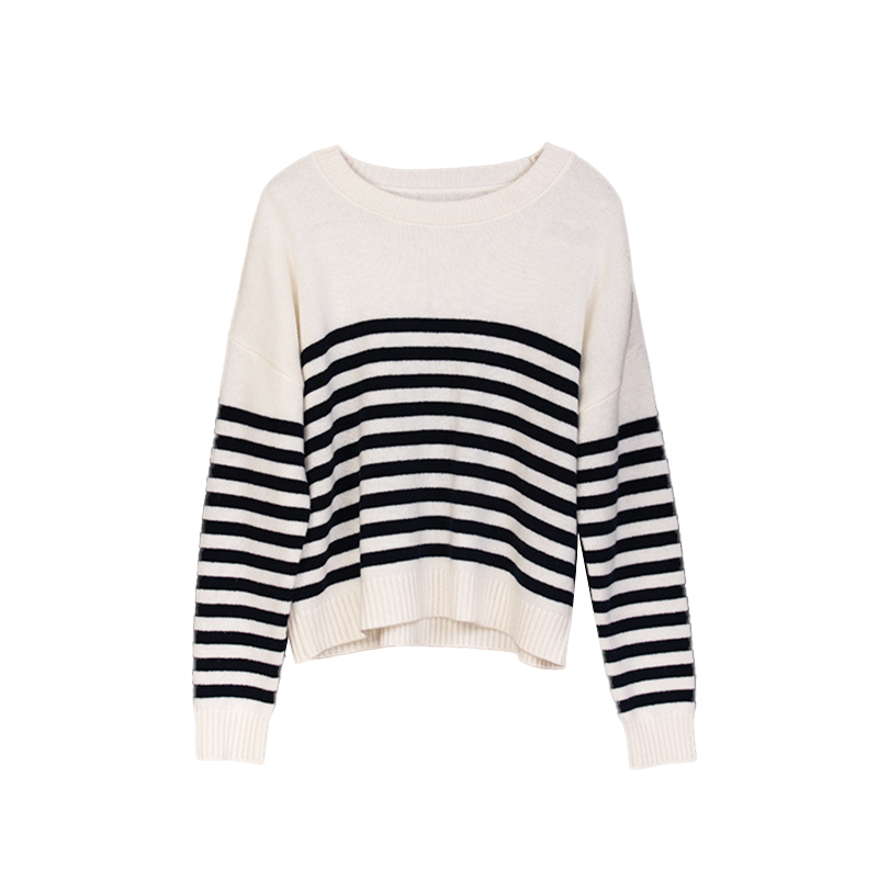 诗梦女装秋冬新款条纹针织衫圆领长袖宽松休闲羊毛毛衣撞色减龄