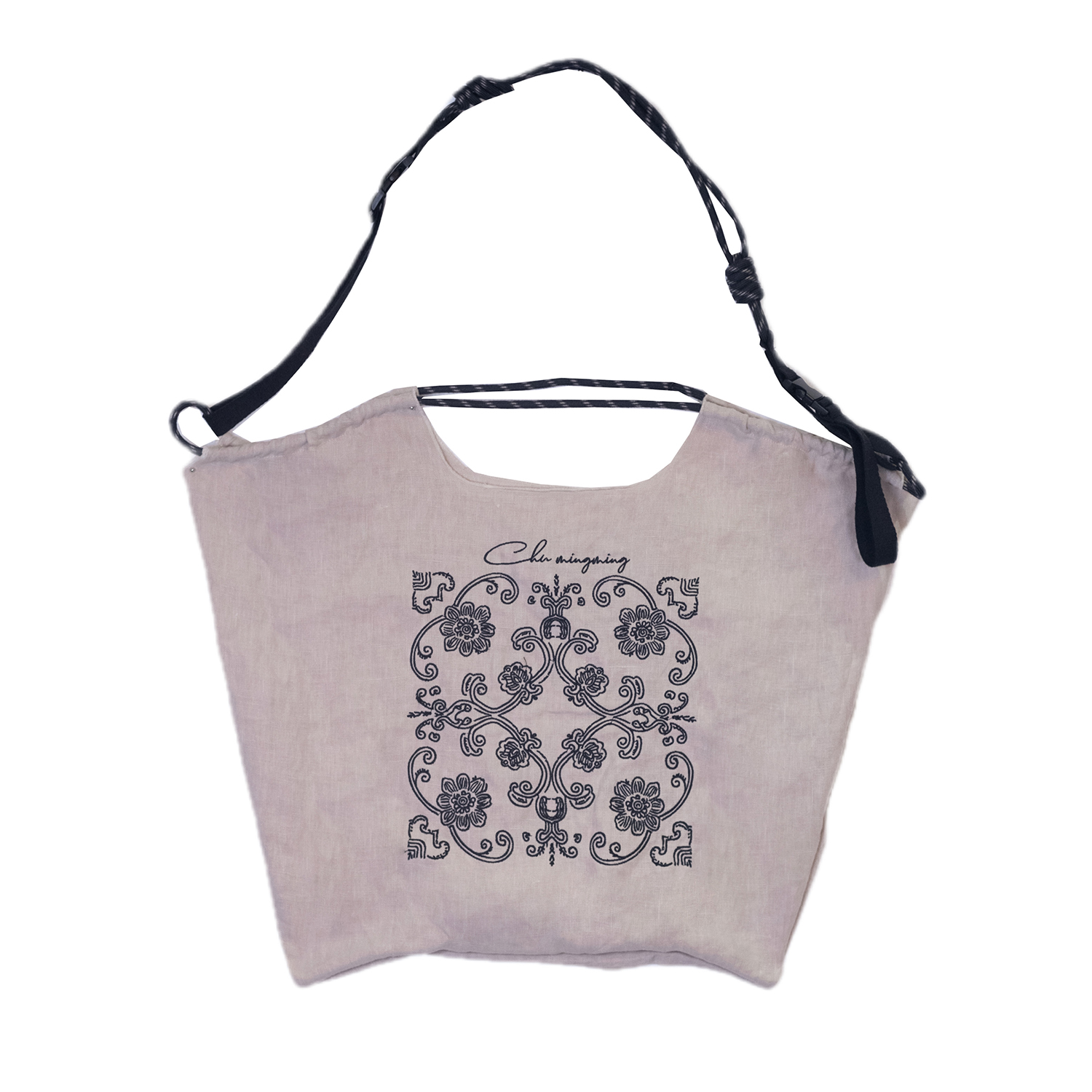 CHU楚妞[提花]亚麻刺绣手提袋春季新款女可折叠手提单肩包