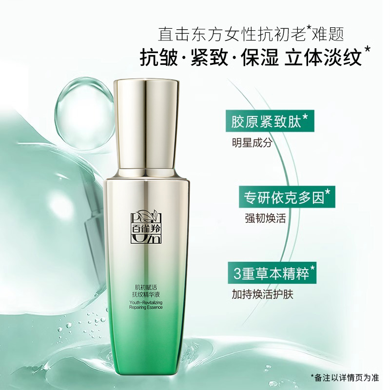 2瓶百雀羚肌初赋活抚纹精华液30ml抗皱紧致淡纹小绿瓶面部无盒