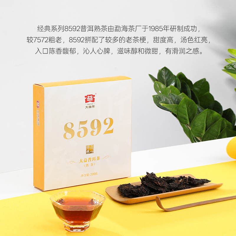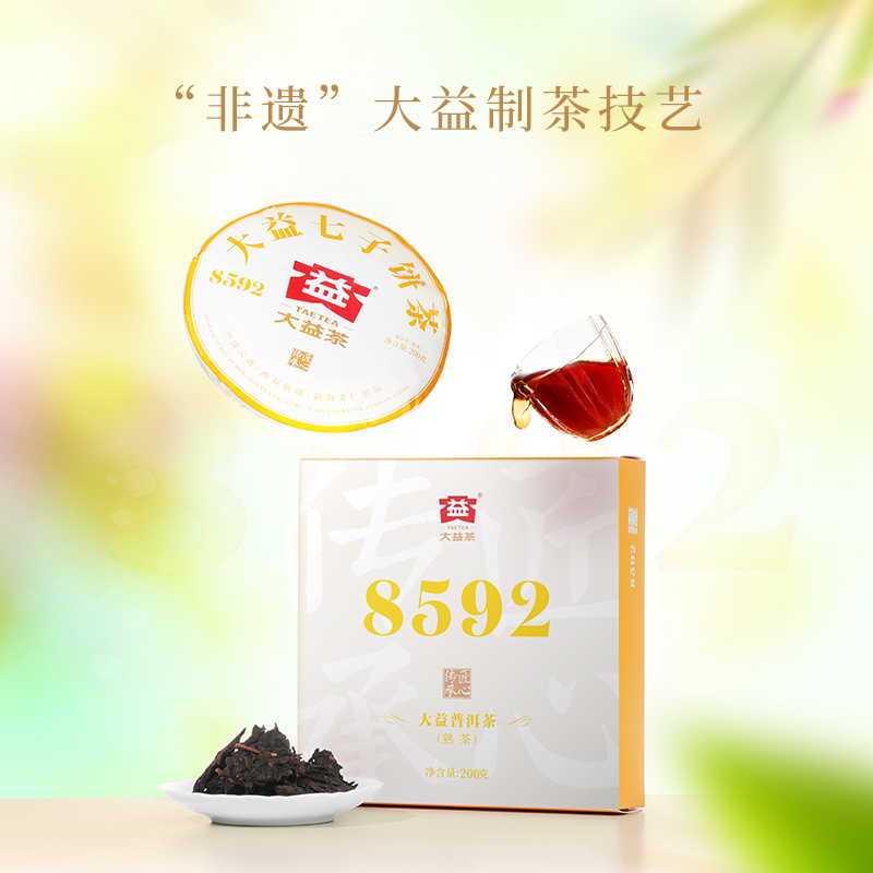 大益普洱茶经典口粮茶8592熟茶200g饼茶云南勐海茶叶官方旗舰店