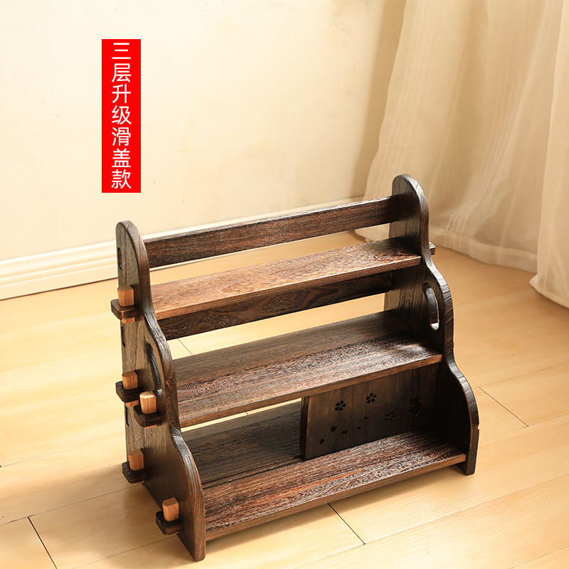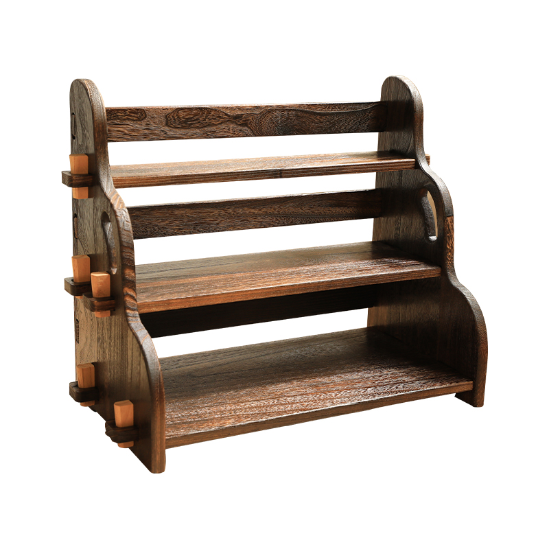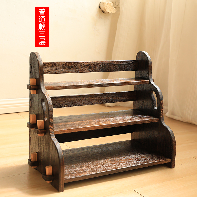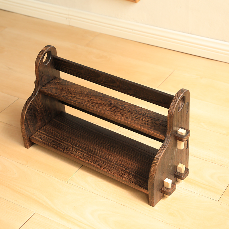 天兰美实木置物架桌面收纳复古落地书架双层多层花架书房组合收纳