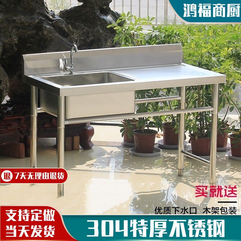 304加厚不锈钢水槽厨房t商用饭店洗衣台洗菜盆洗碗池带平台洗刷盆