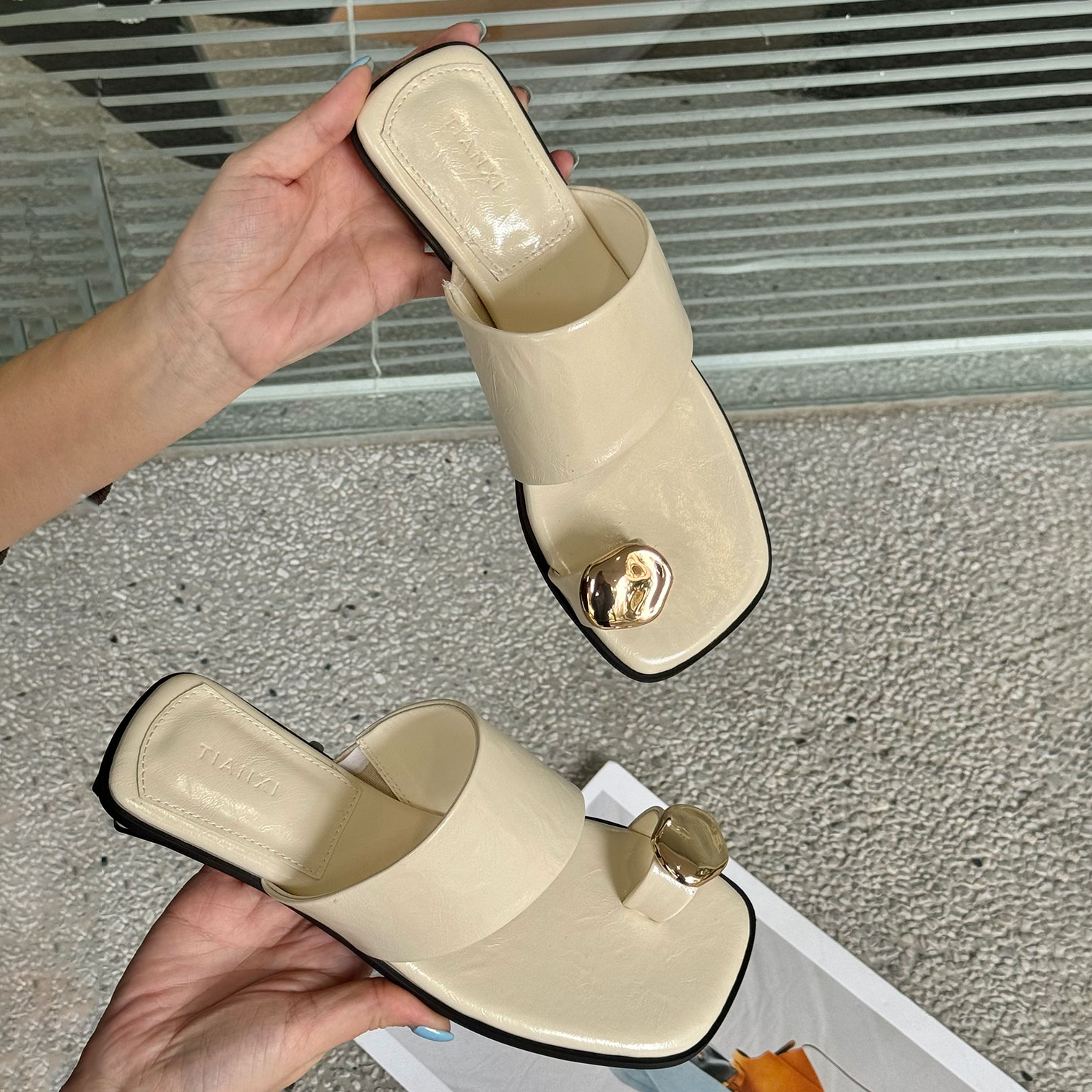 粗跟夹脚拖鞋女2025新款外穿夏配裙子海边沙滩人字拖超火绝美凉拖