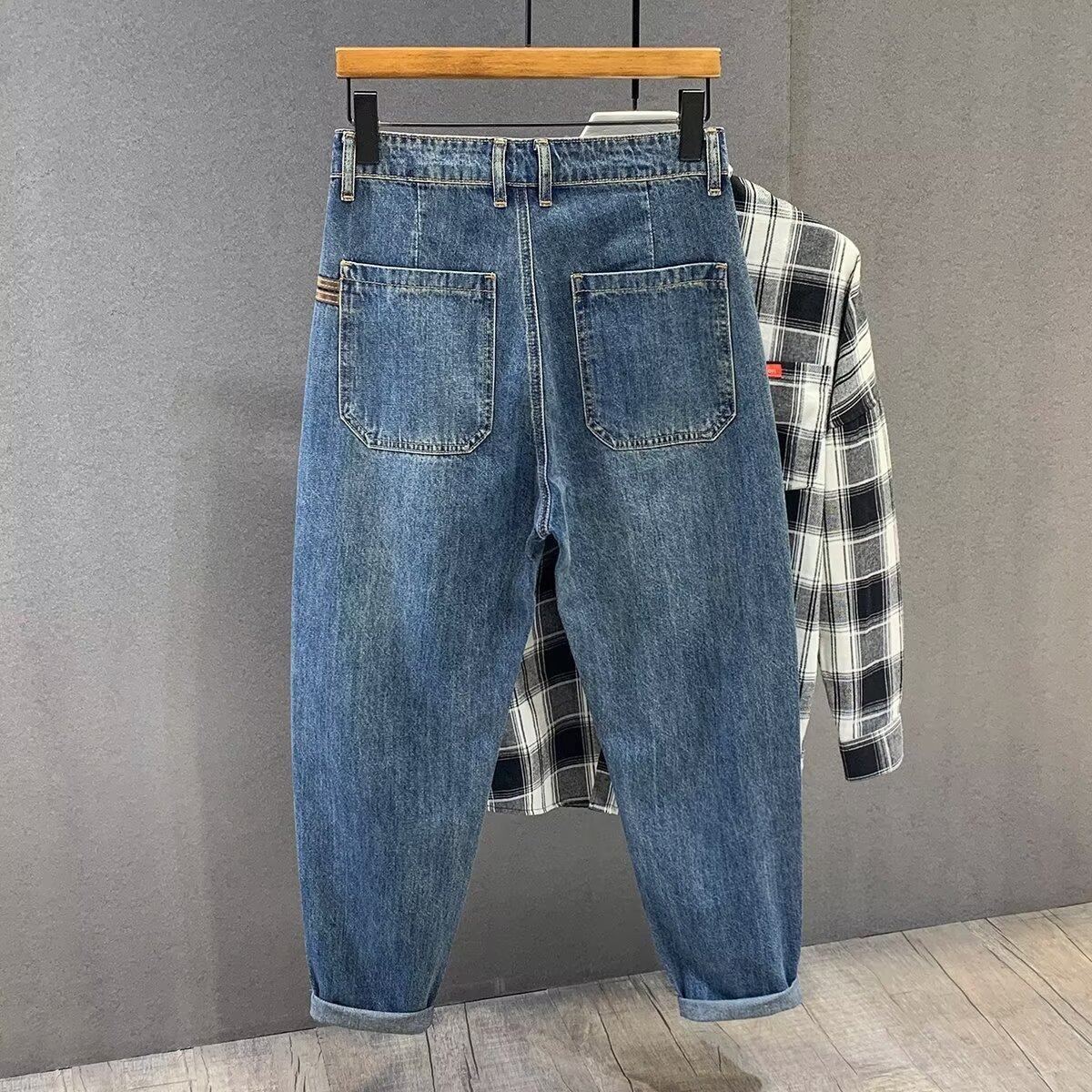 复古大码阔腿潮牌牛仔裤男直筒宽松萝卜锥形哈伦老爹裤男夏季薄款