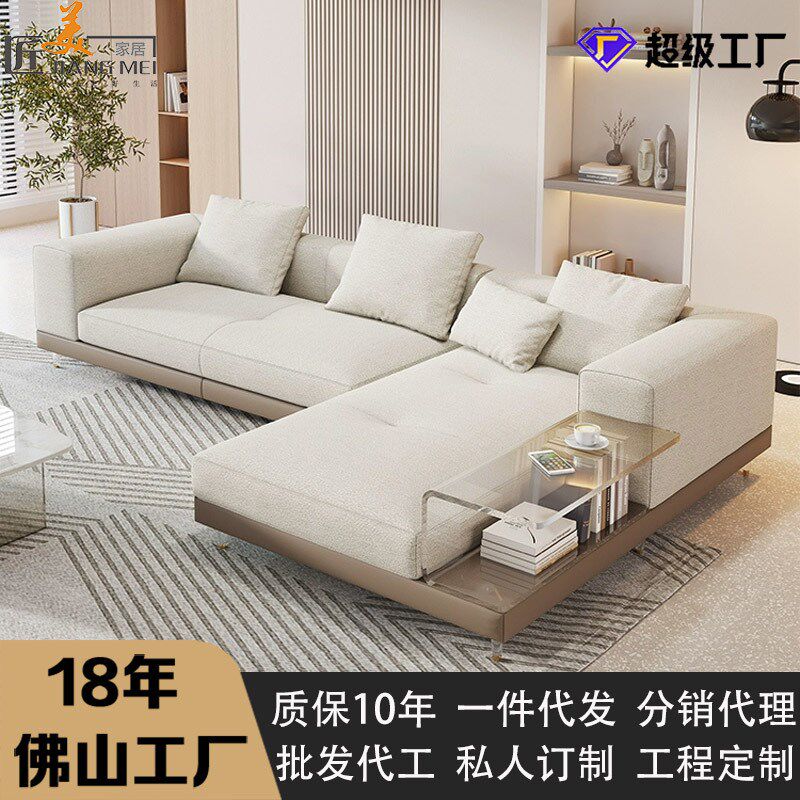 意式皮艺极简康纳利棉麻布艺沙发轻奢品质客厅大小户型新款贵妃
