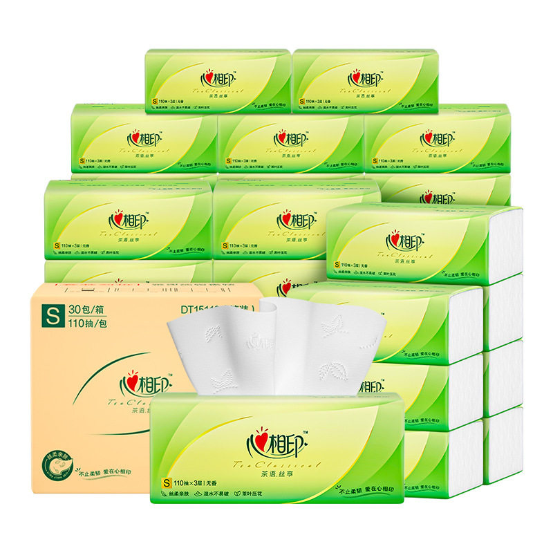 心相印 茶语丝享抽纸110抽三层纸面巾餐巾纸家用纸软包装代发