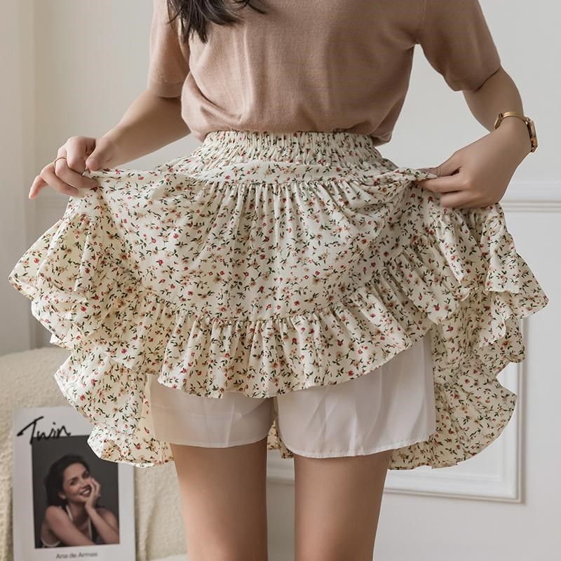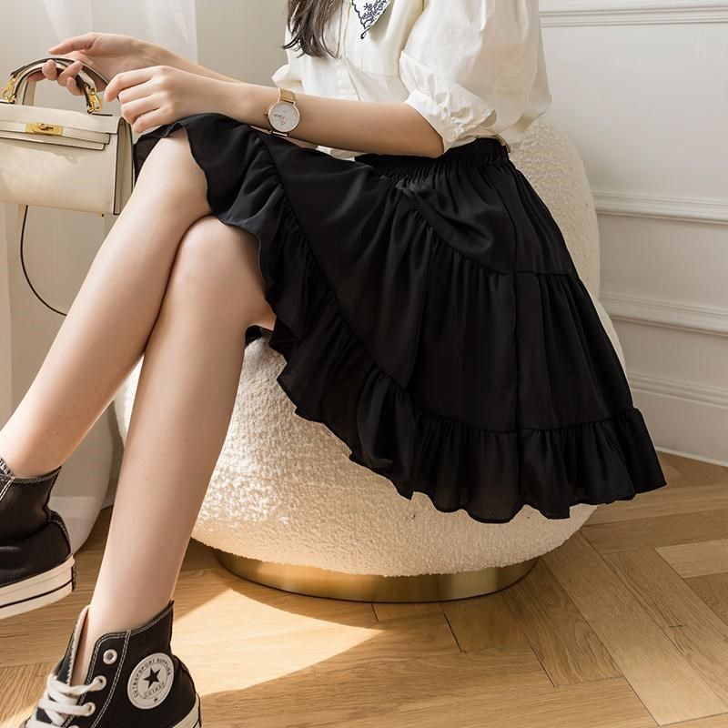 防走光雪纺白色半身裙女夏季2025新款高腰显瘦百褶蛋糕a字短裙裤