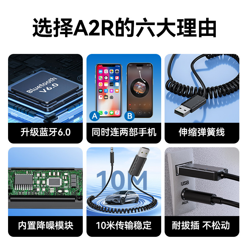 6.0车载蓝牙接收器汽车音频转接器aux音频线音响箱用usb转3.5模块