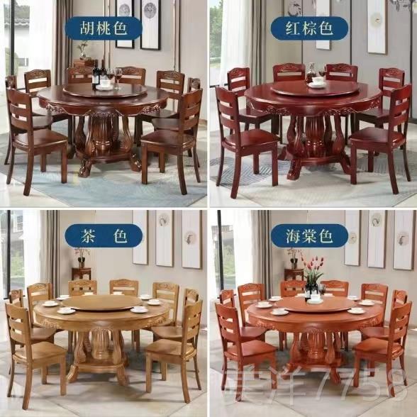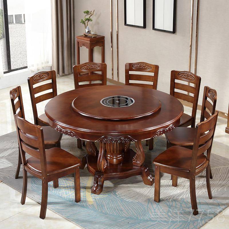 高档桌实中木餐组合圆形餐桌带转盘10人大圆桌椅雕花吃饭桌子新式