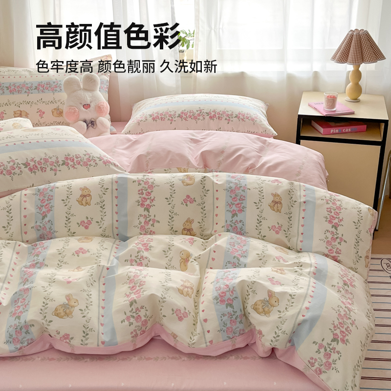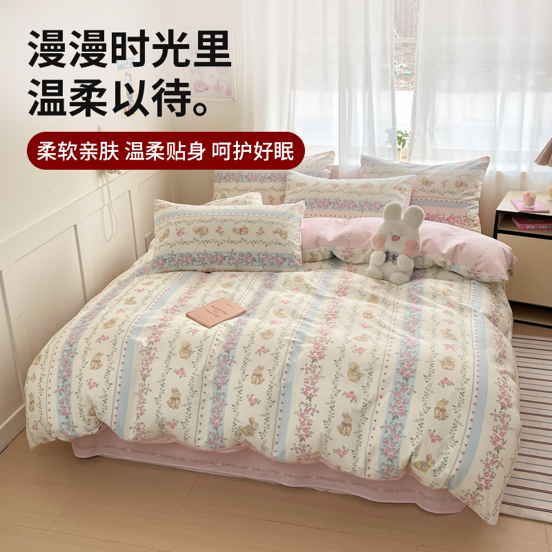 无印良品纯棉床品三件套全棉少女风被套卧室单人床上用品四件套