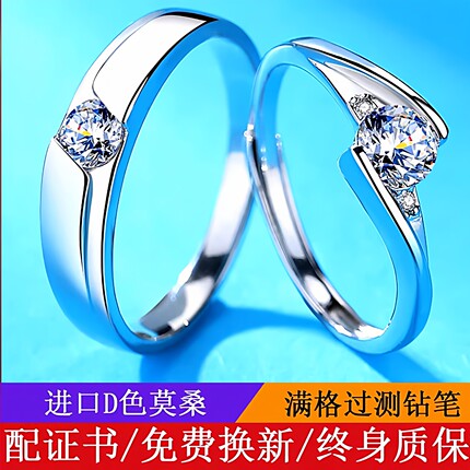 莫桑石情侣戒指纯银一对求结婚钻戒男女款轻奢高级感对戒刻字礼物