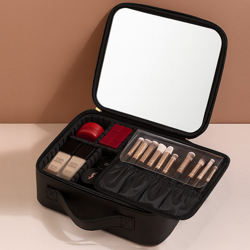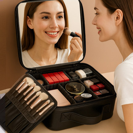 化妆包女大容量2025新款便携分区刷护肤品旅行洗漱收纳包带镜子