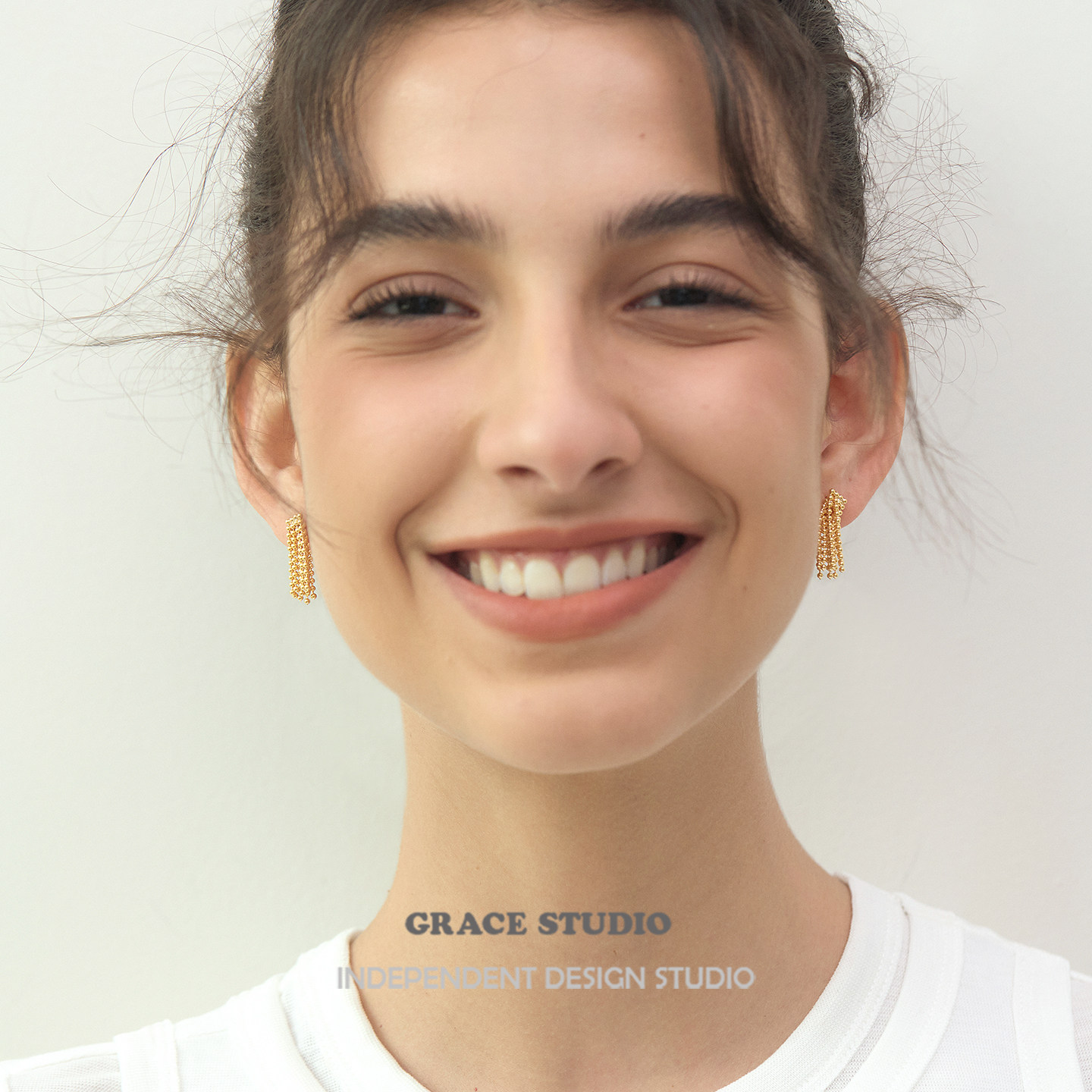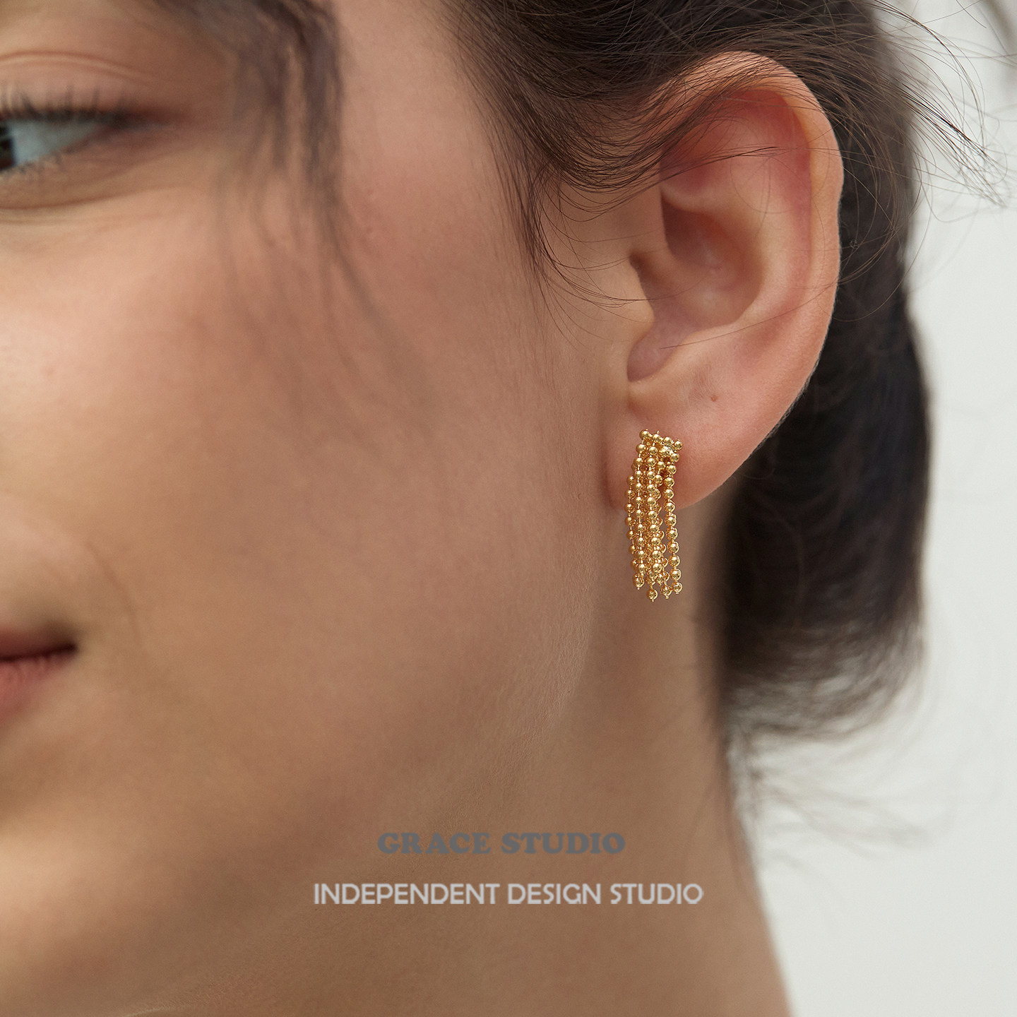 G/S 小众设计精致金属流苏耳环女时髦ins风金色耳钉宴会礼服耳饰