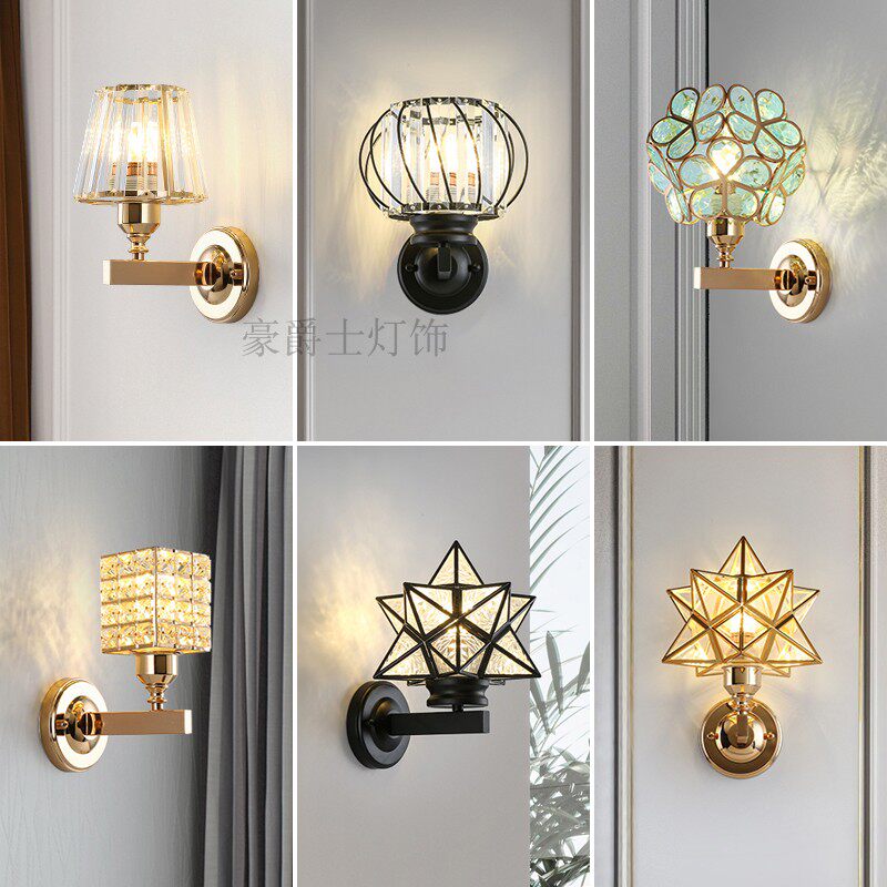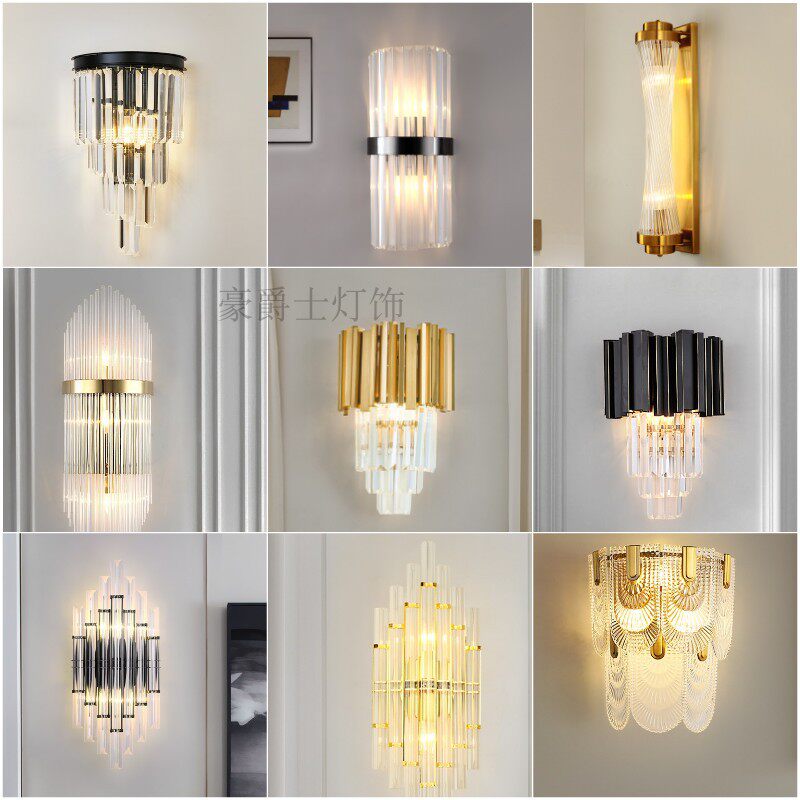 北欧轻奢客厅背景墙楼梯过道灯现代简约水晶壁灯走廊卧室床头灯具