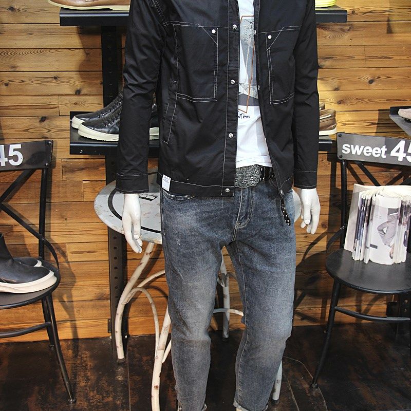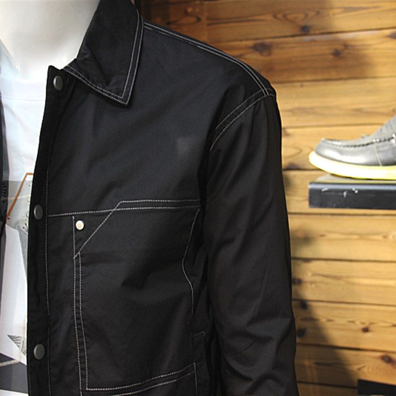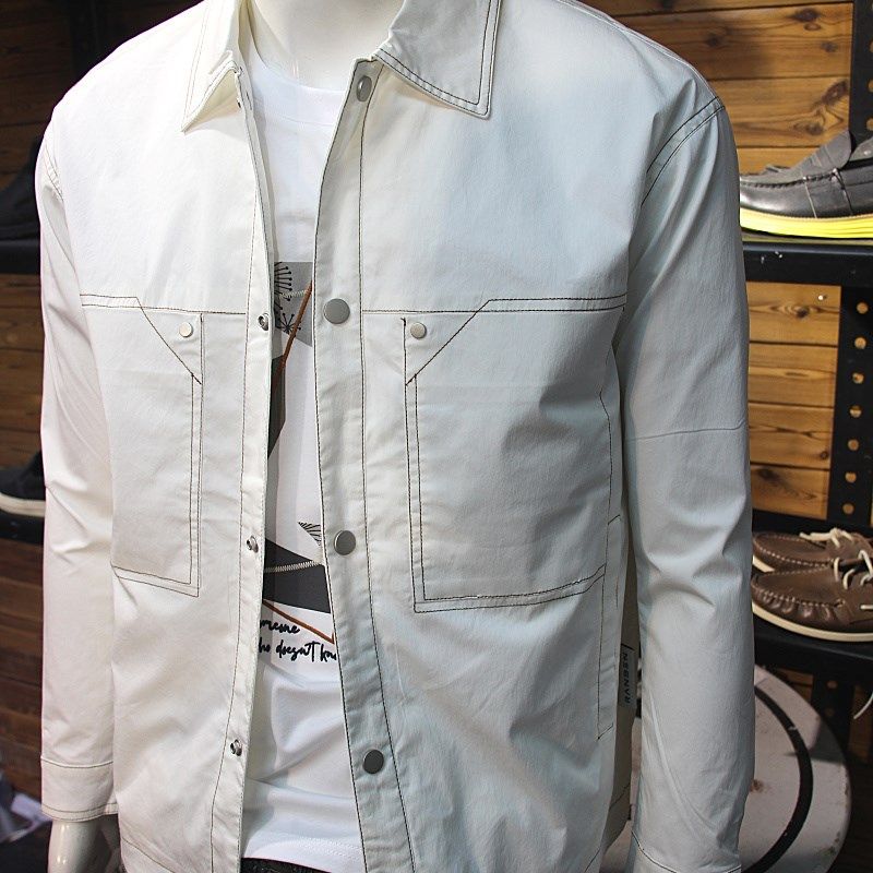 明线修身翻领男夹克春季薄款简单净版青年外套日系休闲男长袖外套