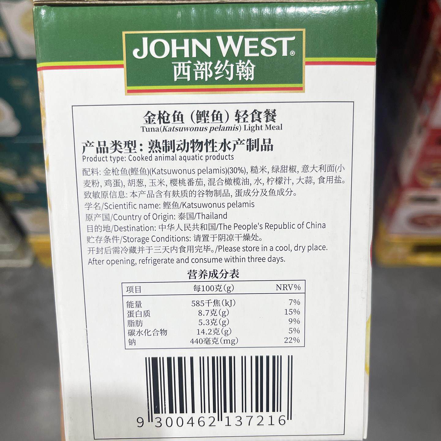 山姆会员店代购 JOHN WEST 泰国进囗 即食金枪鱼轻食餐170g