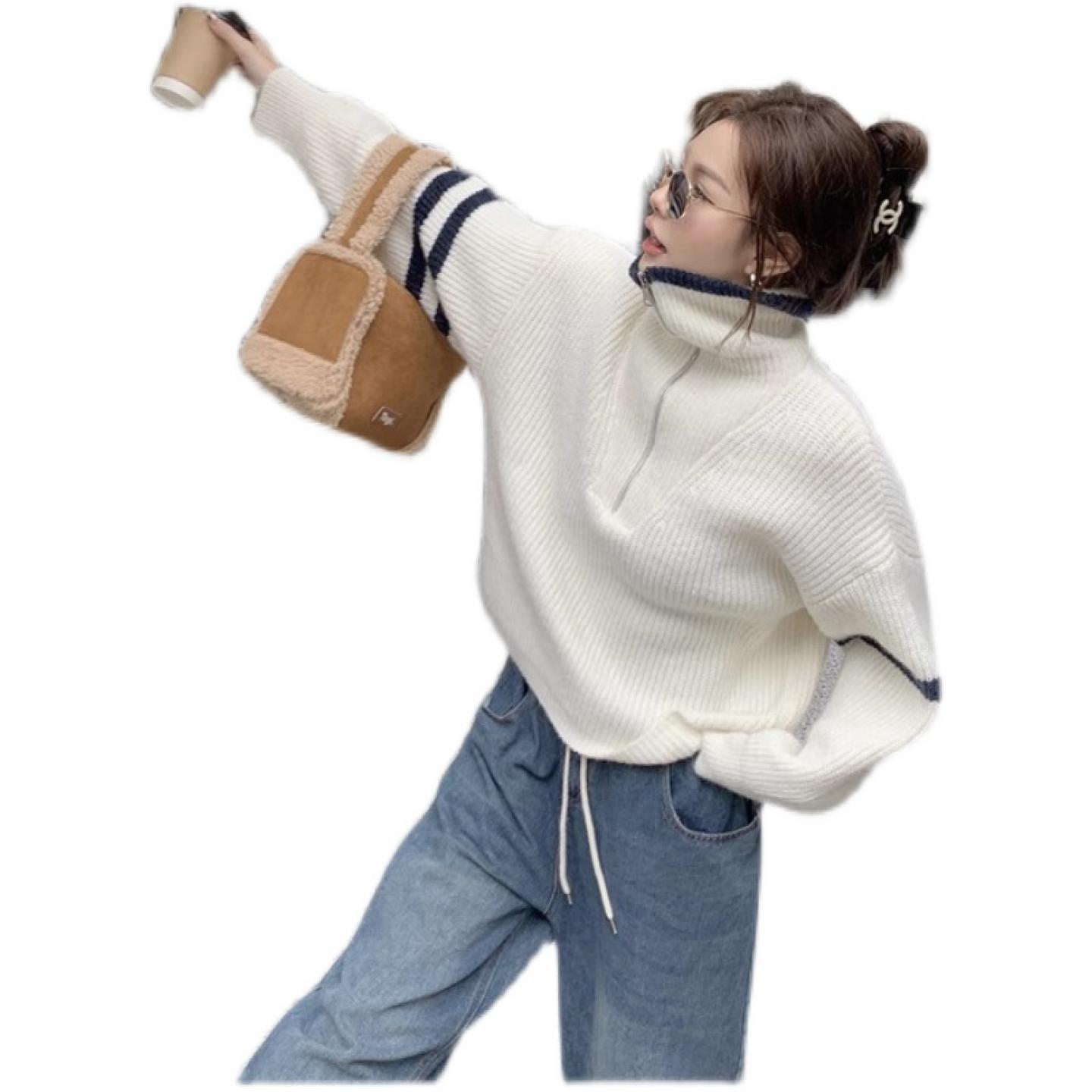 2025秋冬新款100%山羊绒毛衣女POLO高领半拉链宽松加厚针织打底衫