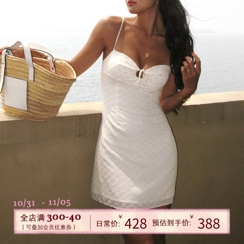 ITSNIKAR法式纯欲米白雏菊提花吊带裙春夏气质性感修身收腰连衣裙