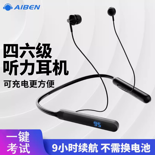 艾本 C10英语四六级听力考试耳机充电无线fm调频颈挂入耳式耳机