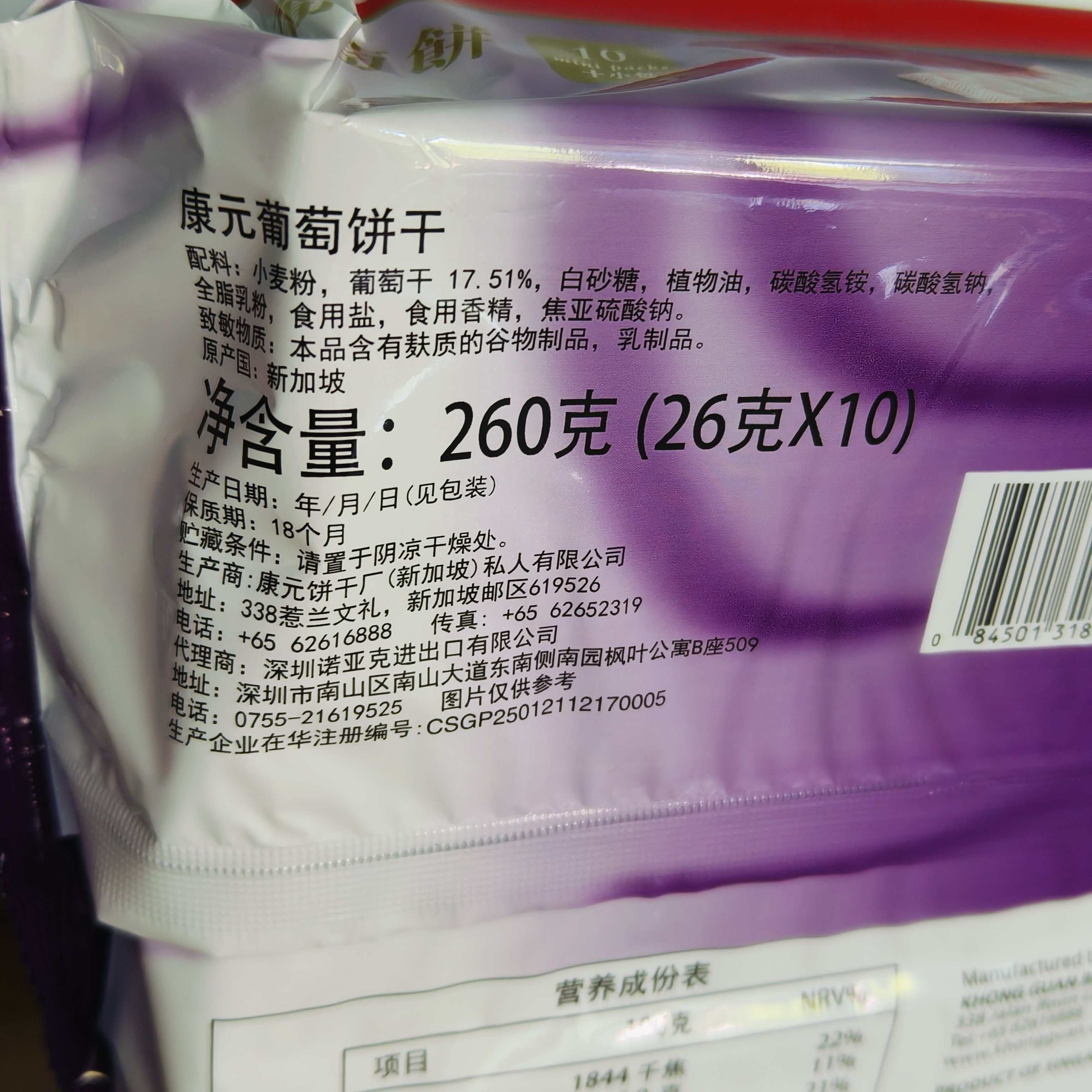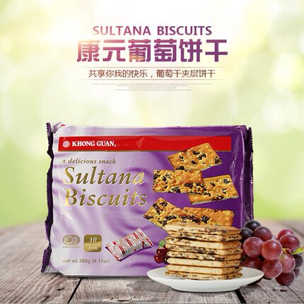 260g康元葡萄饼提子饼干新加坡进口食品内含10个小包装