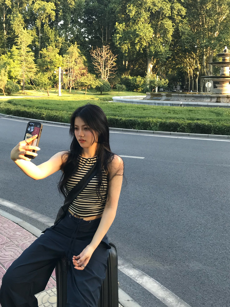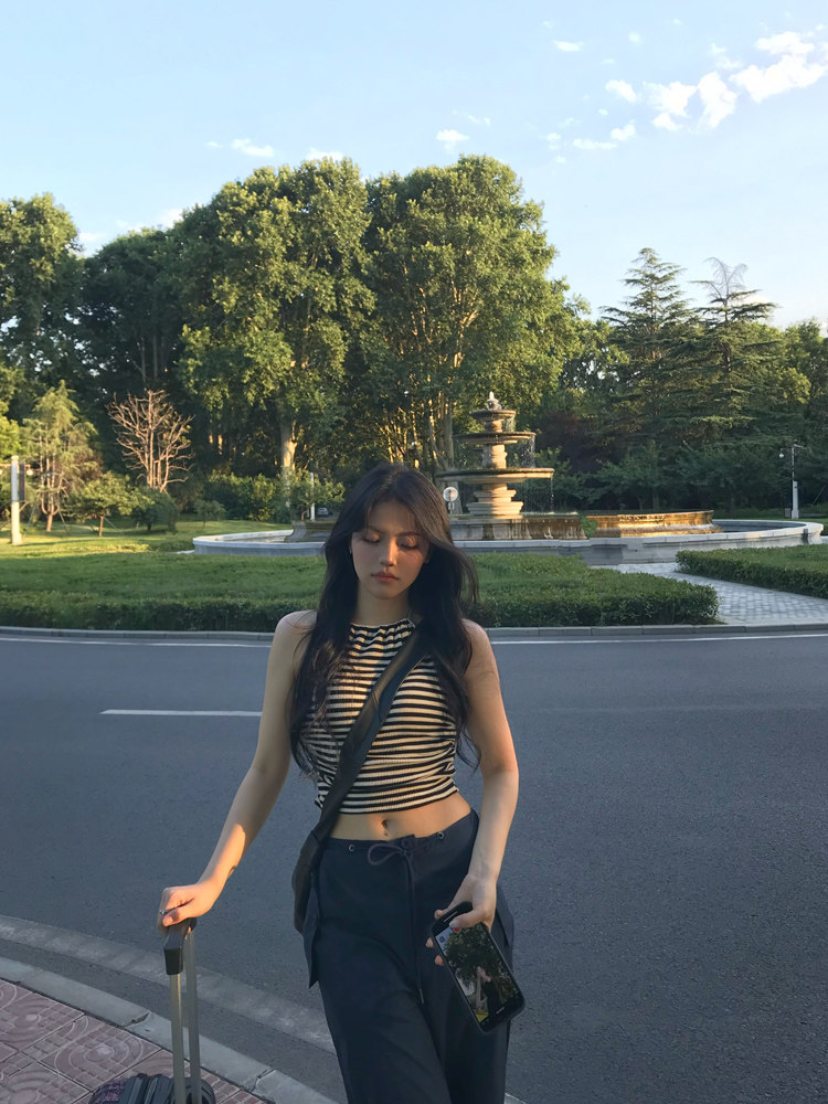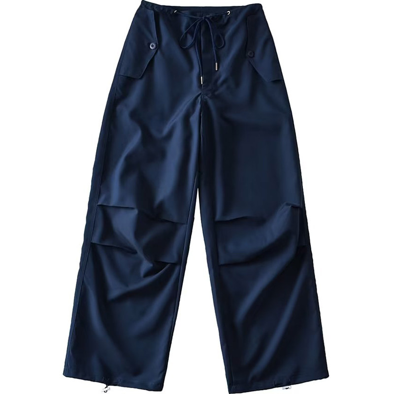 棉洋薄款空气感阔腿裤欧美街头辣妹工装纸袋裤垂感休闲裤拖地长裤