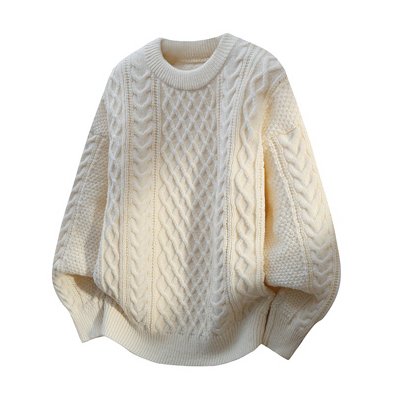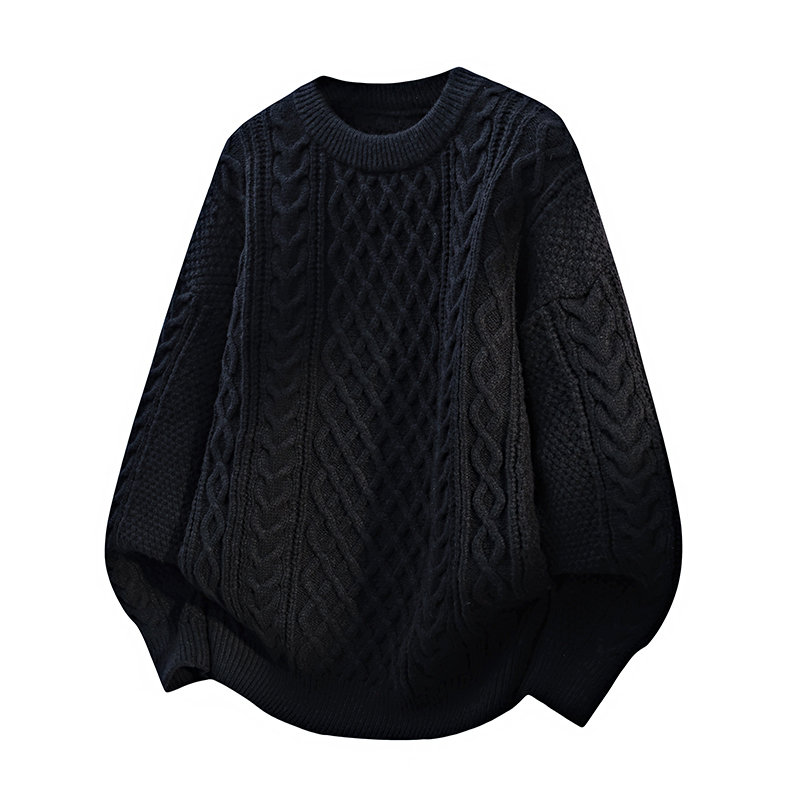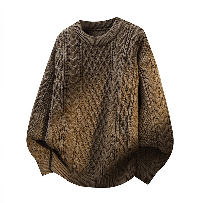 唐狮集团DESSO麻花圆领加绒加厚毛衣男秋冬休闲慵懒风打底针织衫