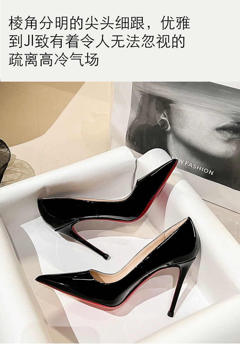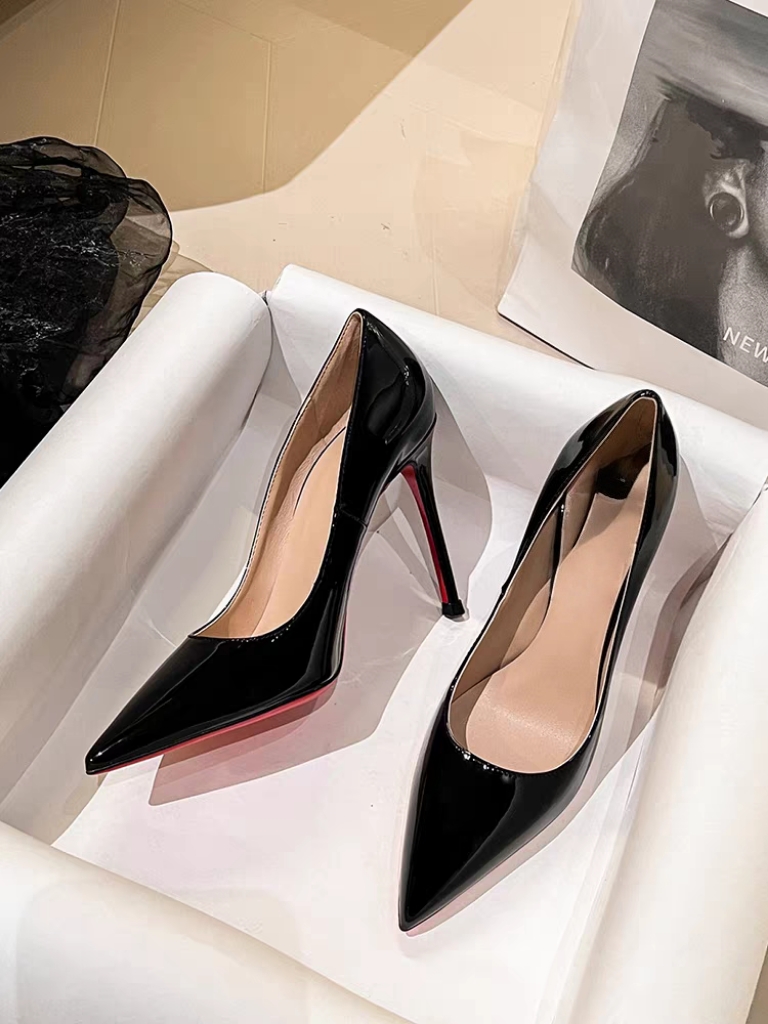 2025新款黑色红底漆皮细跟尖头单鞋女鞋高跟鞋女鞋女单鞋不累脚