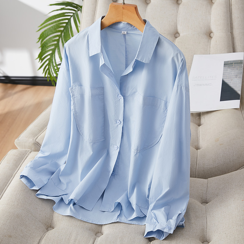 初影精梳棉衬衫女长袖2025秋装新款简约通勤上衣宽松纯棉白衬衣