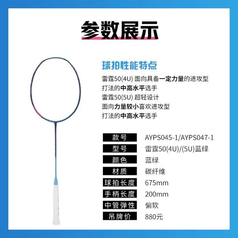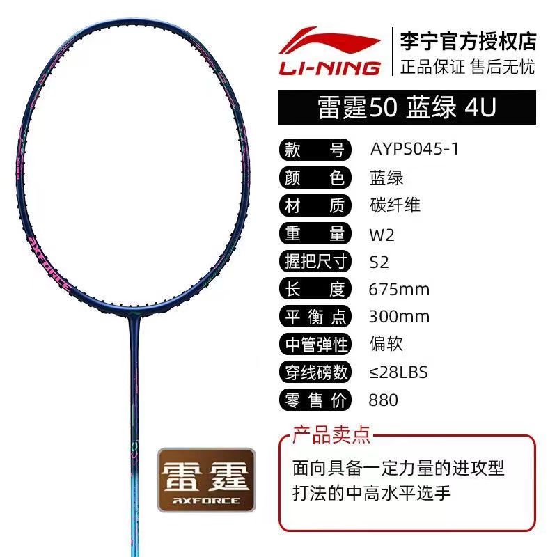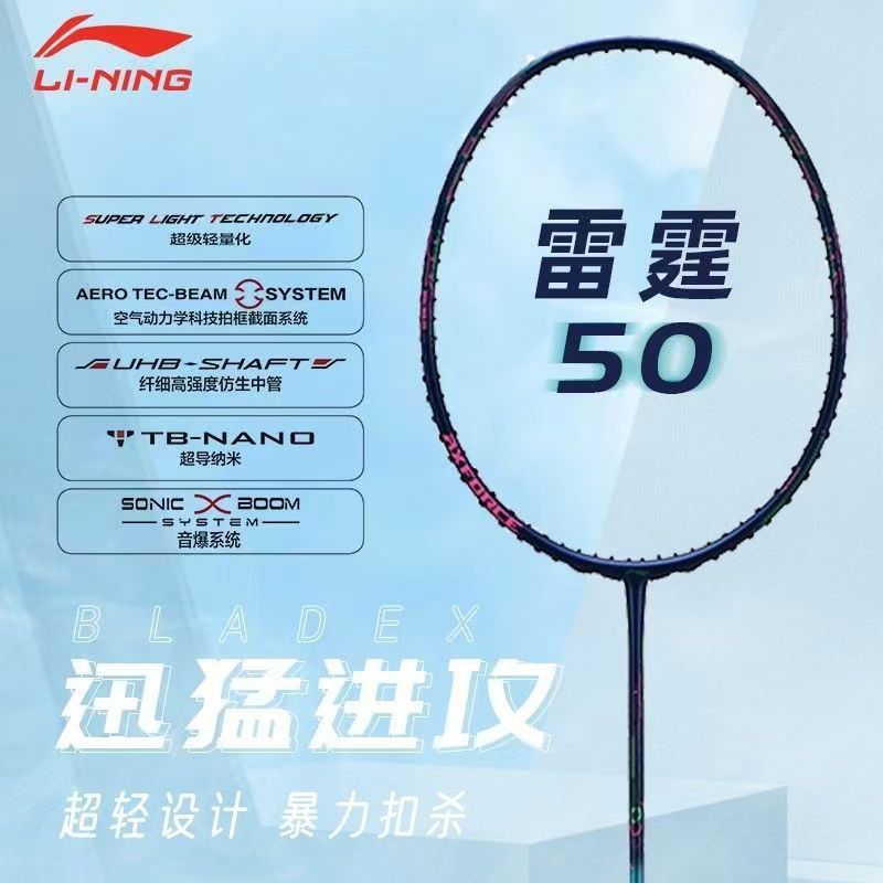 李宁雷霆50羽毛球拍超轻暴力进攻型高弹性全碳素纤维专业比赛单拍