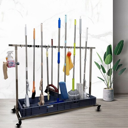 落地移动不锈钢放拖m把架扫把拖布置物架保洁清洁工具收纳沥水架
